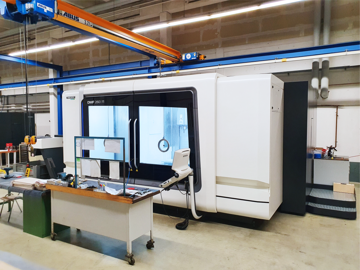 Ergänzend zu unser bereits im Betrieb befindlichen DMG DMF260-7, mit der wir bei einigen Bauteilen bereits an die Grenze der Bearbeitungsgröße stoßen, haben wir uns eine DMG DMF260-11 angeschafft.