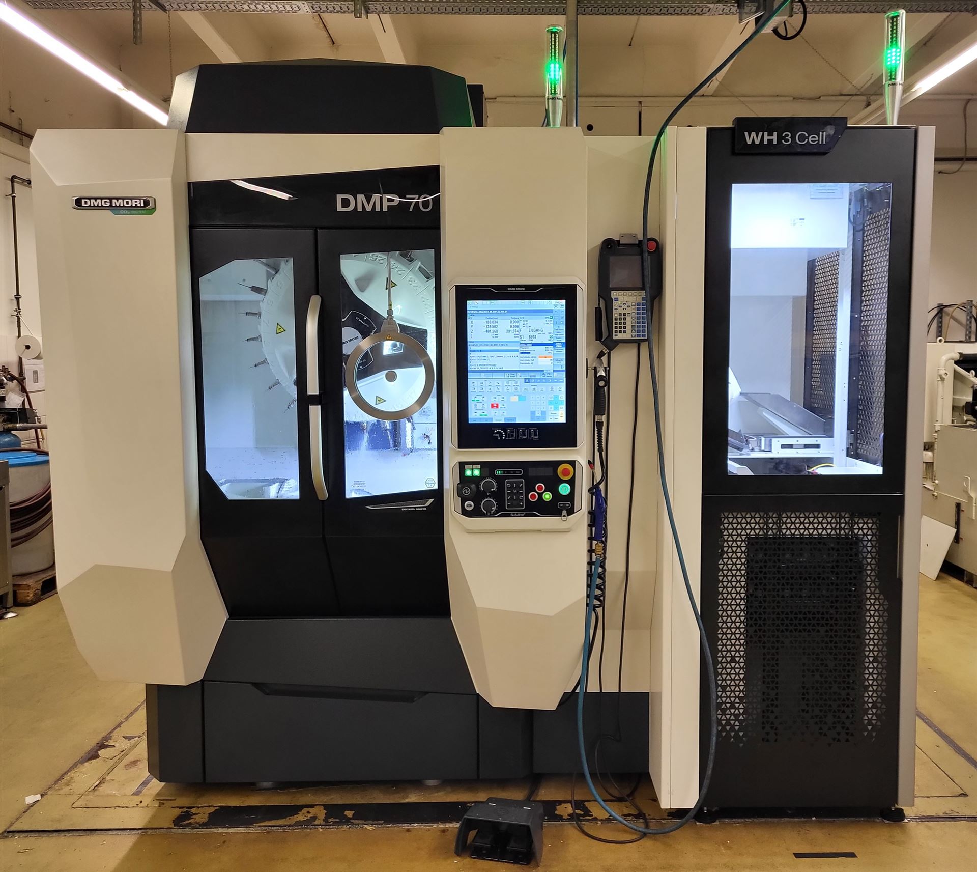 Eine etwas in die Jahre gekommene Fräsmaschine wird im August 2022 durch eine DMG DMP70 5achsig ersetzt. Um in unser Serienfertigung etwas Entlastung zu schaffen, haben wir uns entschieden diese Maschine mit einer Roboterzelle anzuschaffen.