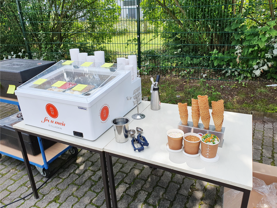 Heute haben wir ein Eisessen für alle Mitarbeiter veranstaltet. Jeder durfte seine Eiskugel selber „kugeln“. Dank der acht verschiedenen Sorten war für jeden etwas dabei.